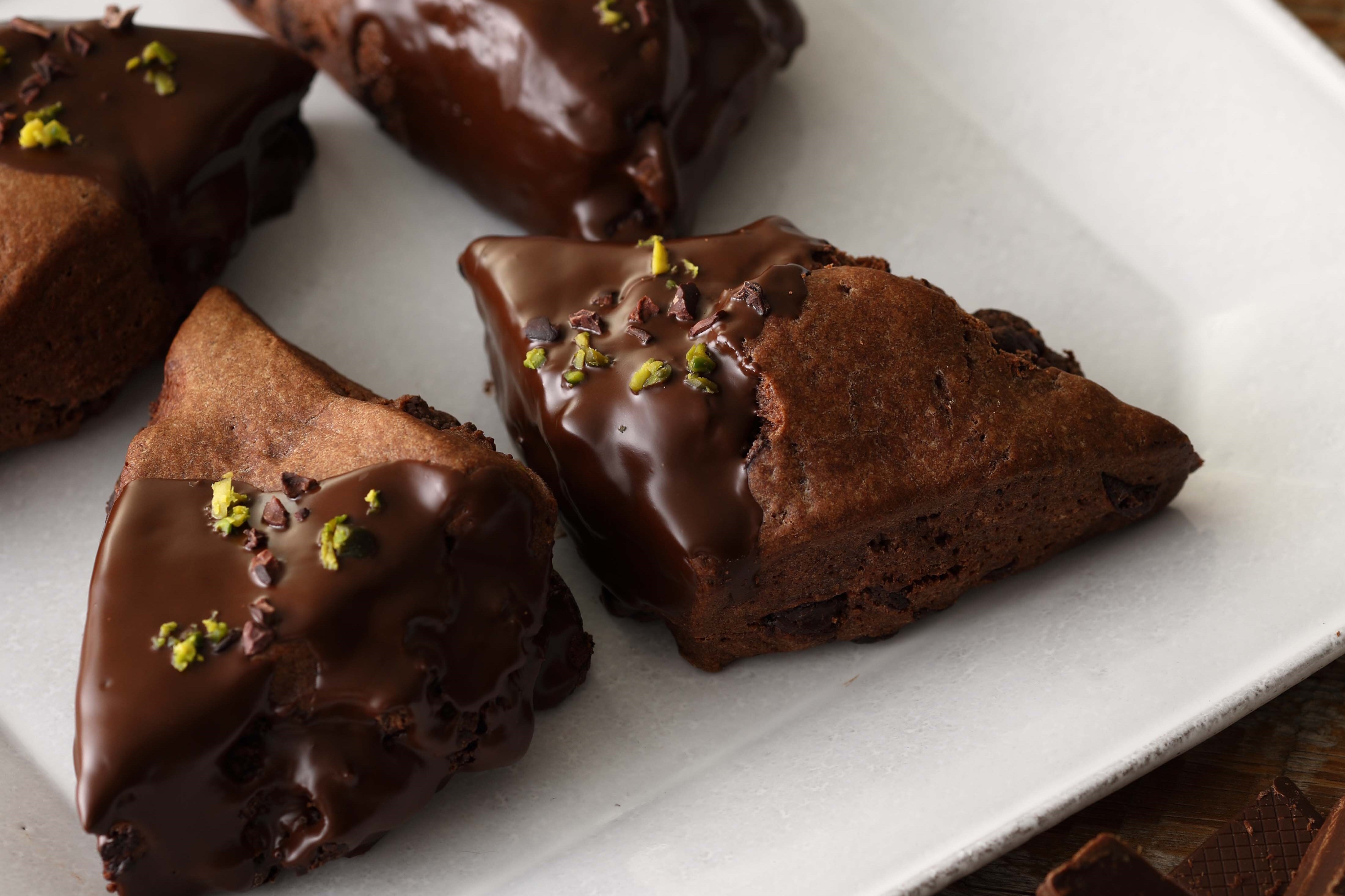 Chocolate & Organic Cacao nib 大粒チョコレートをたっぷり混ぜこんだココア生地に、ダークチョコレートとカカオニブをトッピングしたチョコレートづくしのスコーン。 (2/4~3/10販売)